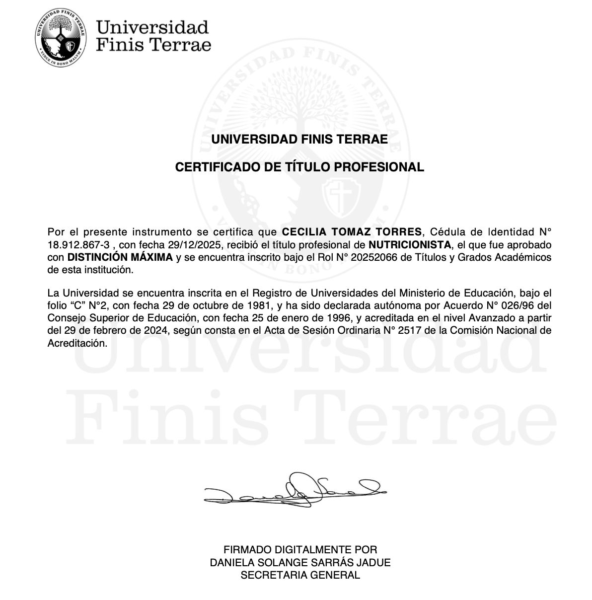 Mi misión es entregarte herramientas prácticas y educación nutricional, para que puedas tomar decisiones informadas y conscientes sobre tu alimentación, adaptadas a tu estilo de vida, objetivos y etapa vital. Creo firmemente que una buena nutrición no solo impacta en el presente, sino que es clave para llegar a la vejez con energía, autonomía y optimismo.
